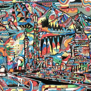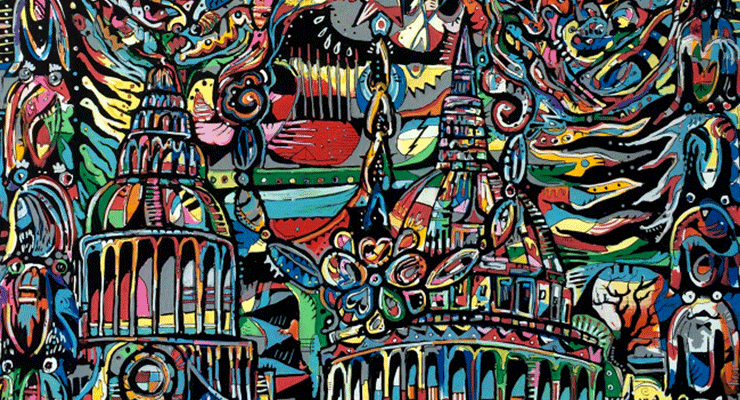“Andrea Ambrogio ripartisce l’immagine come un puzzle deviante dalle tessere tossiche. La frammentazione è totale, così come la voluta incoerenza cromatica e l’impatto finale delle architetture figurative. L’opera agisce per sovrimpressioni mimetiche, dislocando memorie e impulsi, denunce e passioni, sintonie e divergenze. Ritroviamo la cultura massimalista di Hundertwasser e l’istinto infantile di Jean Dubuffet dentro un chiaro urlo da metropoli pop.